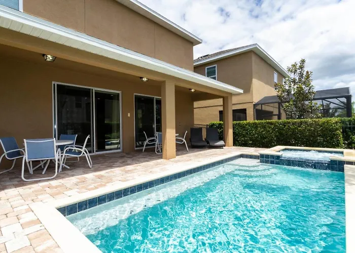 Located nearly 25 minutes' walk from Arnold Palmer Golf Course, the 5-bedroom 421 Np - Exquisite Retreat At Encore Resort Orlando villa boasts a swimming pool with a hot tub and an indoor pool.